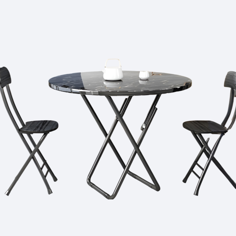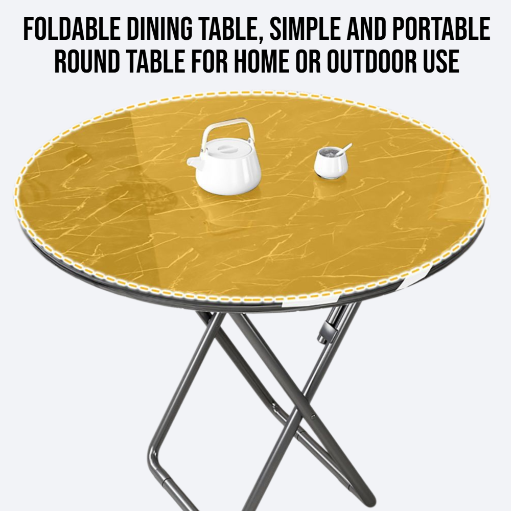 Space-saving design, lightweight structure, easy to fold and store, durable materials, suitable for indoor and outdoor use, quick assembly, stable round tabletop.