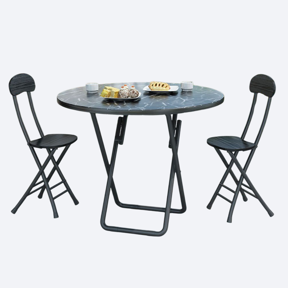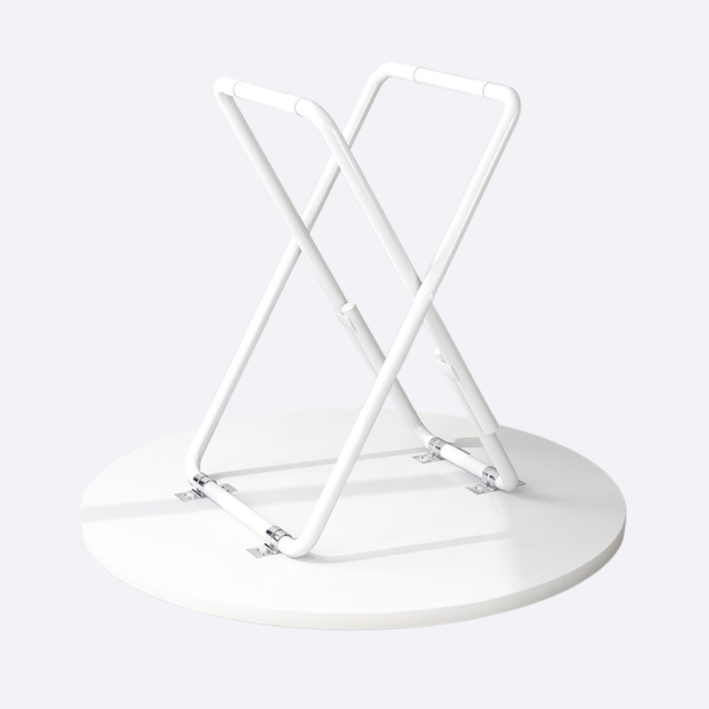 Space-saving design, lightweight structure, easy to fold and store, durable materials, suitable for indoor and outdoor use, quick assembly, stable round tabletop.